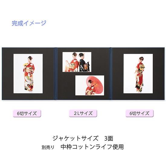 リピートです。前回の白がとても良かったので、再度紺色三面を購入して、写真を入れてみました。紺色は、写真が一層引き締まり、とても良い具合に出来上がりました。
