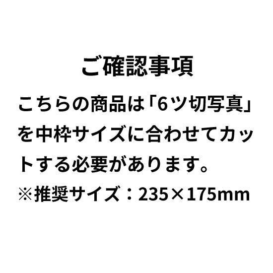 6切用ですが6切の写真サイズが25.4cm×20.3cmなので一部カットしないと写真が中枠からはみ出てしまいます。
