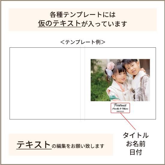 | テンプレートを使って自由にデザインできる写真台紙です。 お宮参りや百日・七五三・成人・ブライダルなど、多目的にご使用できます。 【印刷について】 弊社では、特色(スポットカラーやDIC、PANTONE)の使用や色の指定には対応ができません。 素材の色味に依存するため、色調の完全再現は出来かねます。ご注意ください。 | デザイン作成について |