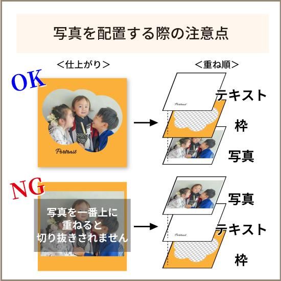 解像度が低いと画像が粗く印刷される場合がございます。※推奨解像度は200dpi以上です。 モニターの発色により、実際の色味と多少異なる場合があります。 ページ数によってテンプレートの配置にばらつきがございます。デザイン作成の際はご注意ください。 ファイルをアップロードできない場合は恐れ入りますが、お問合せフォーム からご連絡ください。 デザイン違いで複数個の作製をご希望のお客様は、デザインごとに「デザインキーの発行とカートへの商品追加」が必要です。商品がすべてカートに入りましたら、まとめてご注文をお願いいたします。 | お取り扱い上の注意 |
