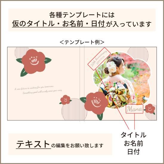 | ご注文前に必ずデザインを作成いただきますようお願い致します。 ※デザインを作成せずにご注文され、3営業日以内にお客様と連絡が取れない場合は「ご注文キャンセル」の手続きをさせていただきますので予めご了承ください。 ※商品製作後のキャンセルはできませんのでご了承ください。 解像度が低いと画像が粗く印刷される場合がございます。※推奨解像度は200dpi以上です。 モニターの発色により、実際の色味と多少異なる場合があります。 ページ数によってテンプレートの配置にばらつきがございます。デザイン作成の際はご注意ください。 ファイルをアップロードできない場合は恐れ入りますが、注文ページの お問合せフォーム からご連絡ください。 デザイン違いで複数個の作製をご希望のお客様は、デザインごとに「デザインキーの発行とカートへの商品追加」が必要です。商品がすべてカートに入りましたら、まとめてご注文をお願いいたします。 | お取り扱い上の注意 |