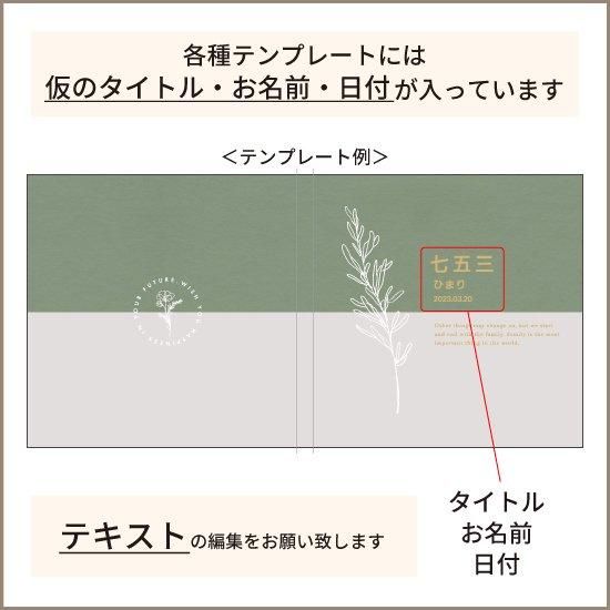 | 若葉やお花をあしらったナチュラルなデザイン。 お宮参りや百日・七五三・成人・ブライダルなど、多目的にご使用できます。 【印刷について】 弊社では、特色(スポットカラーやDIC、PANTONE)の使用や色の指定には対応ができません。 素材の色味に依存するため、色調の完全再現は出来かねます。ご注意ください。 | デザイン作成について |