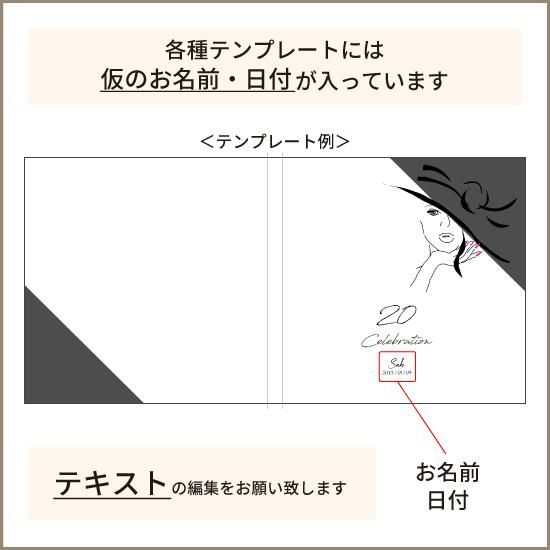 | ご注文前に必ずデザインを作成いただきますようお願い致します。 ※デザインを作成せずにご注文され、3営業日以内にお客様と連絡が取れない場合は「ご注文キャンセル」の手続きをさせていただきますので予めご了承ください。 ※商品製作後のキャンセルはできませんのでご了承ください。 解像度が低いと画像が粗く印刷される場合がございます。※推奨解像度は200dpi以上です。 モニターの発色により、実際の色味と多少異なる場合があります。 ページ数によってテンプレートの配置にばらつきがございます。デザイン作成の際はご注意ください。 ファイルをアップロードできない場合は恐れ入りますが、注文ページの お問合せフォーム からご連絡ください。 デザイン違いで複数個の作製をご希望のお客様は、デザインごとに「デザインキーの発行とカートへの商品追加」が必要です。商品がすべてカートに入りましたら、まとめてご注文をお願いいたします。 | お取り扱い上の注意 |