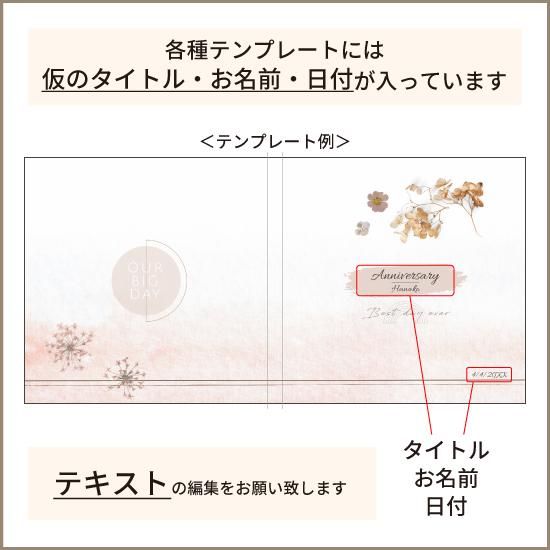| 淡いオレンジ色の背景に押し花をあしらった温かみあるデザイン。 お宮参りや百日祝・七五三など、多目的にご使用できます。 【印刷について】 弊社では、特色(スポットカラーやDIC、PANTONE)の使用や色の指定には対応ができません。 素材の色味に依存するため、色調の完全再現は出来かねます。ご注意ください。 | 納期について |